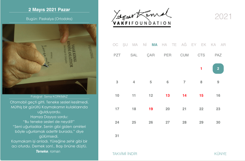 Takvim Linki: https://yasarkemalvakfi.org/takvim/
